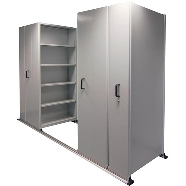 -  This shelving system is not secured to the floor, allowing the mobile shelving system to be easily moved to suit the changing office environment