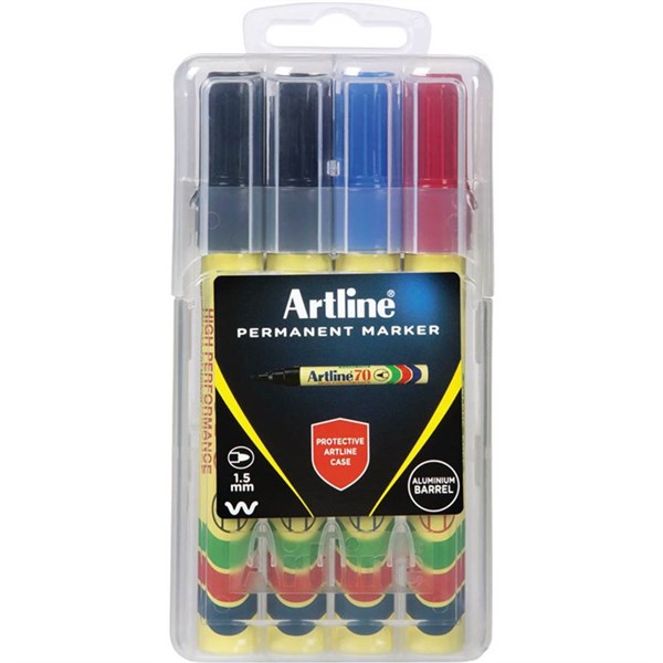 ARTLINE 70 PERMANENT MARKER BULLET 1.5MM ASSORTED HARD CASE PACK 4