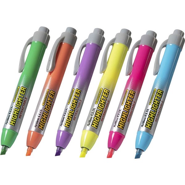 ARTLINE CLIX HIGHLIGHTER RETRACTABLE CHISEL 4MM 6 ASSORTED COLOURS BOX 12