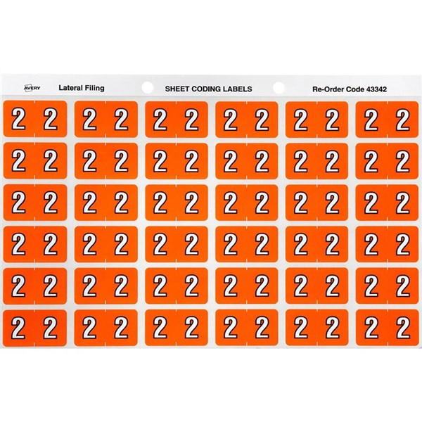 AVERY 43342 LABEL NUMBER 2 25X38MM ORANGE PK180