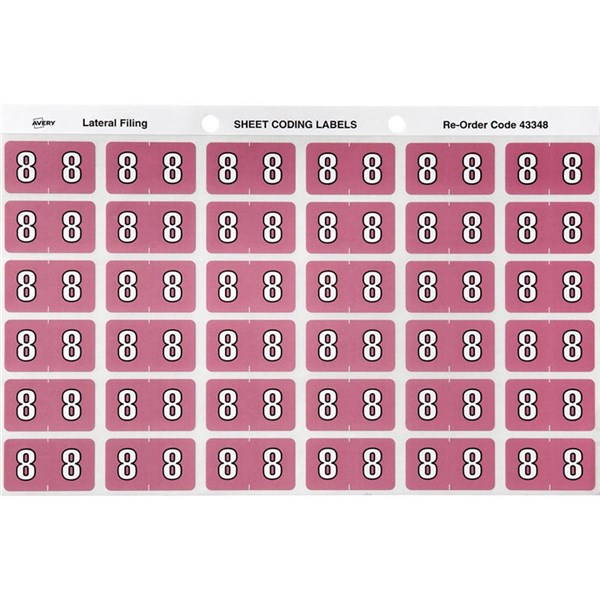AVERY 43348 LABEL NUMBER 8 25X38MM MAUVE 180PK