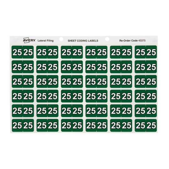 AVERY 43375 LATERAL FILE LABEL SIDE TAB YEAR CODE 25 25 X 38MM DARK GREEN PACK 180