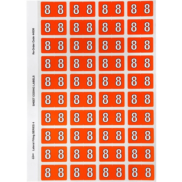 AVERY 44536 LABEL SIDE TAB NO.8 COLOUR CODE 25 X 42MM ORANGE PACK 240