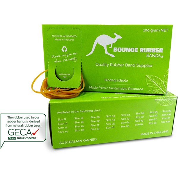 • GECA Claim Authenticated: The rubber used in Bounce Rubber bands is derived from natural rubber trees