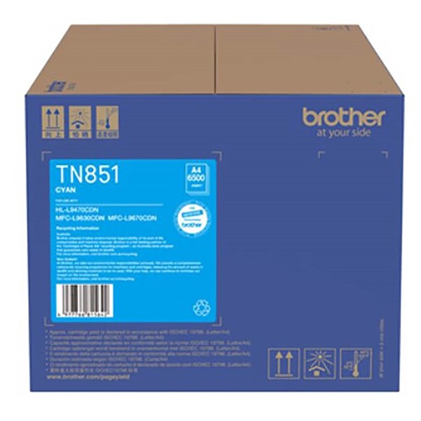 The TN851C cyan toner gives you up to 6,500 pages of printing