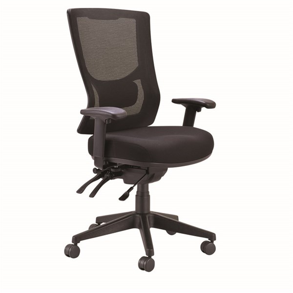 BURO METRO II 24/7 OFFICE CHAIR MESH HIGH BACK 3-LEVER POLISHED ALUMINIUM BASE WITH ARMS BLACK