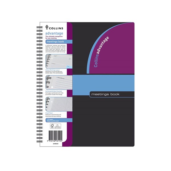 COLLINS ADVANTAGE MEETINGS NOTEBOOK A4 BLACK