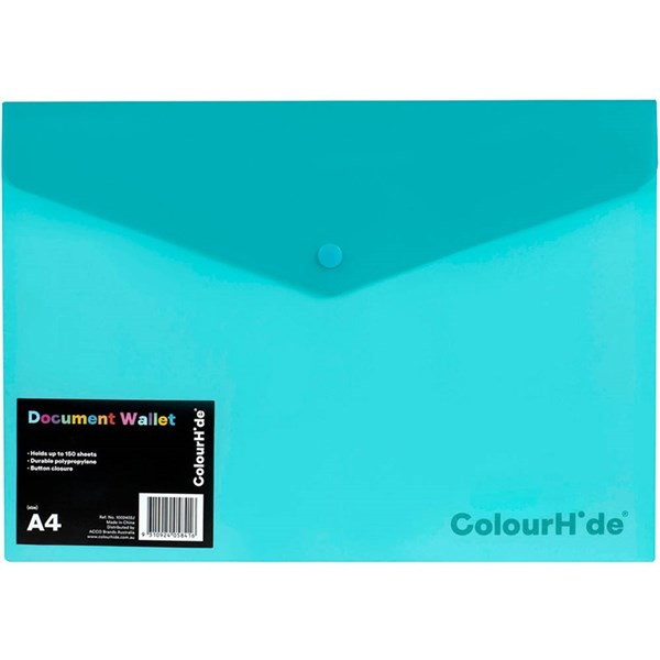 COLOURHIDE DOCUMENT WALLET PP A4 AQUA