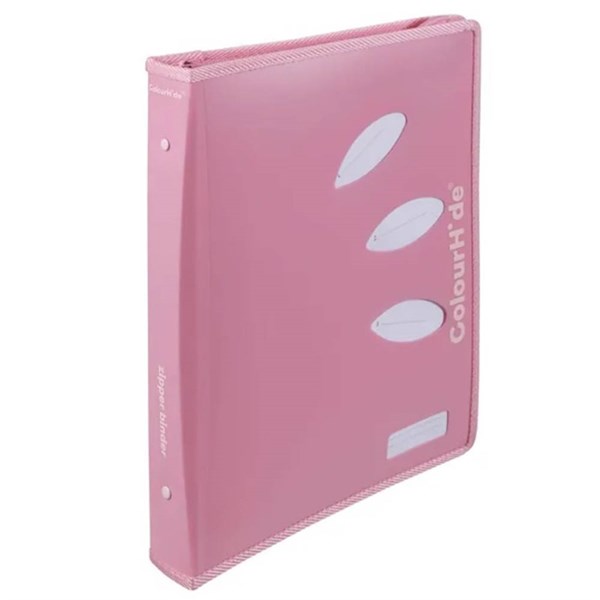 COLOURHIDE ZIPPER RING BINDER PP 2D 25MM A4 BUBBLEGUM PINK