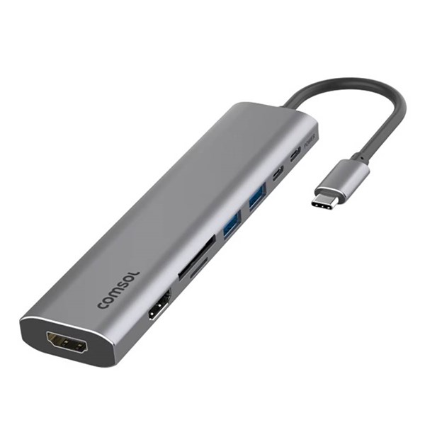 The Comsol USB-C to Dual HDMI 4K with Card Reader Grey CM24HSD is designed to expand connectivity for USB-C enabled laptops, tablets, and smartphones by enabling dual HDMI display output and additional peripheral connections