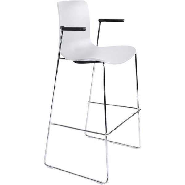 DAL ACTI BAR STOOL SLED BASE HIGH 760MM ARMS BLACK ARM-PADS AND CHROME FRAME WHITE POLYPROP SHELL