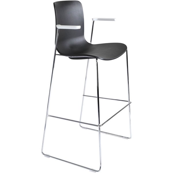 DAL ACTI BAR STOOL SLED BASE HIGH 760MM ARMS WHITE ARM-PADS AND CHROME FRAME BLACK POLYPROP SHELL