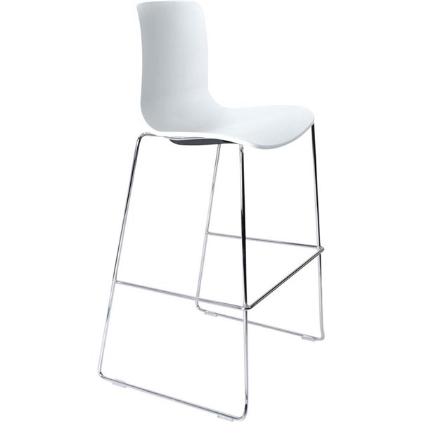 DAL ACTI BAR STOOL SLED BASE HIGH 760MM CHROME FRAME WHITE POLYPROP SHELL