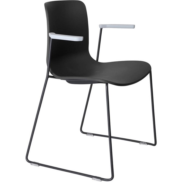 DAL ACTI CHAIR SLED BASE ARMS LIGHT GREY ARM-PADS AND BLACK POWDERCOAT FRAME BLACK POLYPROP SHELL