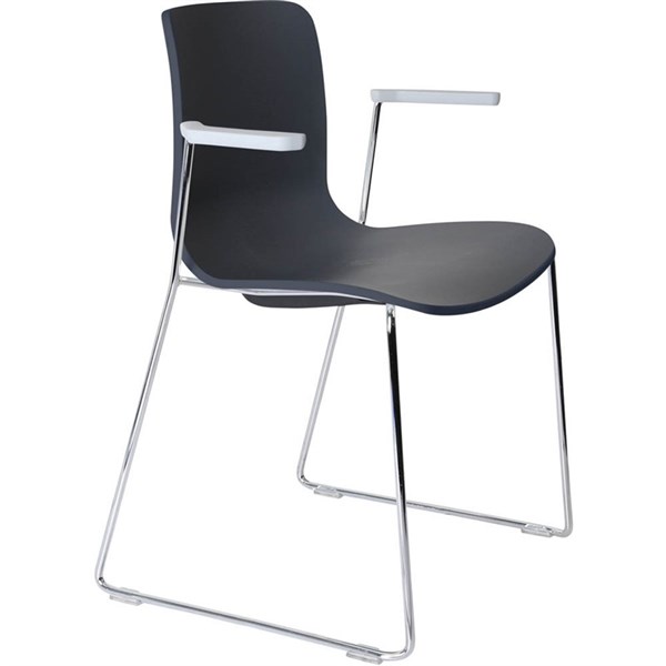 DAL ACTI CHAIR SLED BASE ARMS LIGHT GREY ARM-PADS AND CHROME FRAME CHARCOAL POLYPROP SHELL