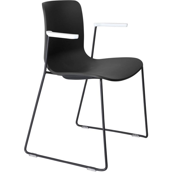 DAL ACTI CHAIR SLED BASE ARMS WHITE ARM-PADS AND BLACK POWDERCOAT FRAME BLACK POLYPROP SHELL