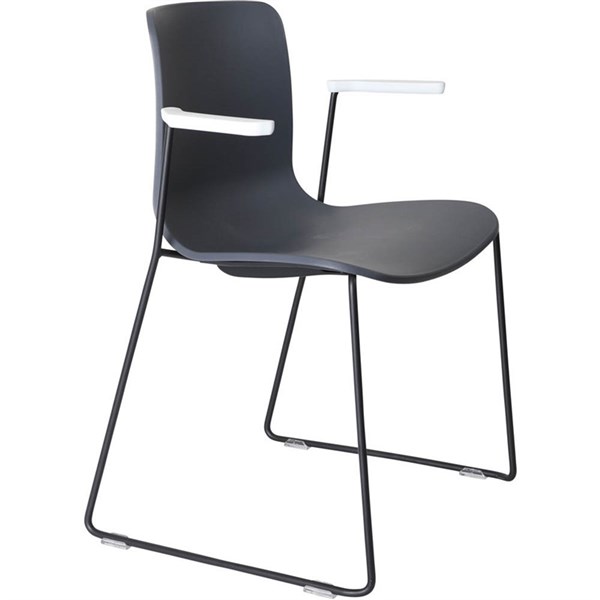 DAL ACTI CHAIR SLED BASE ARMS WHITE ARM-PADS AND BLACK POWDERCOAT FRAME CHARCOAL POLYPROP SHELL