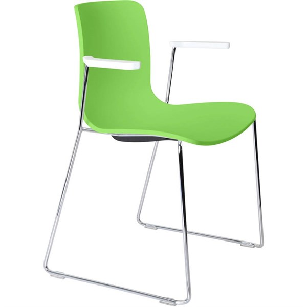 DAL ACTI CHAIR SLED BASE ARMS WHITE ARM-PADS AND CHROME FRAME GREEN POLYPROP SHELL