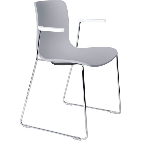 DAL ACTI CHAIR SLED BASE ARMS WHITE ARM-PADS AND CHROME FRAME LIGHT GREY POLYPROP SHELL