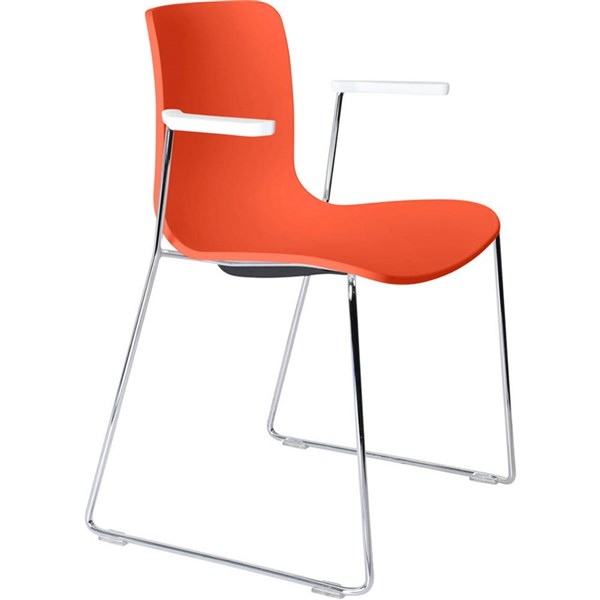 DAL ACTI CHAIR SLED BASE ARMS WHITE ARM-PADS AND CHROME FRAME ORANGE POLYPROP SHELL