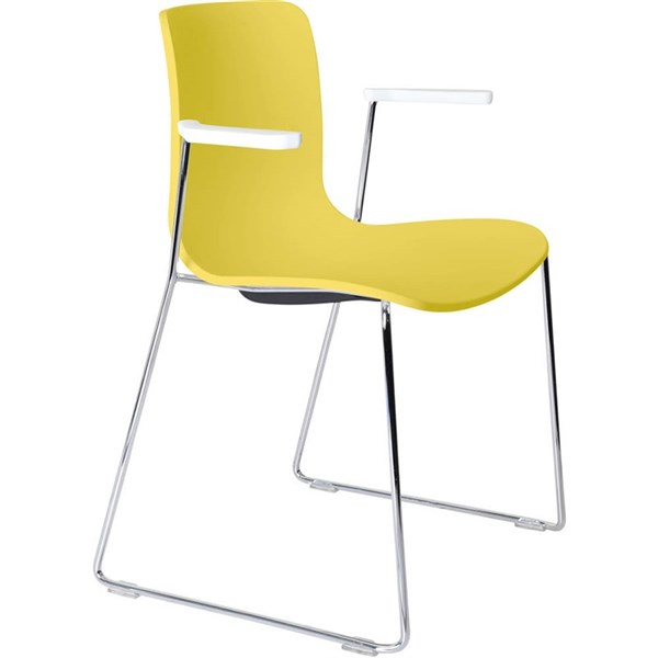 DAL ACTI CHAIR SLED BASE ARMS WHITE ARM-PADS AND CHROME FRAME YELLOW POLYPROP SHELL