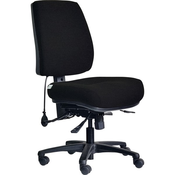 The Dal ErgoSelect Stride chair features all the ergonomic and comfort features you would expect in an ErgoSelect chair- lumbar pump, seat slide, 3 lever mechanism, ratchet back height adjustment and the option of arms