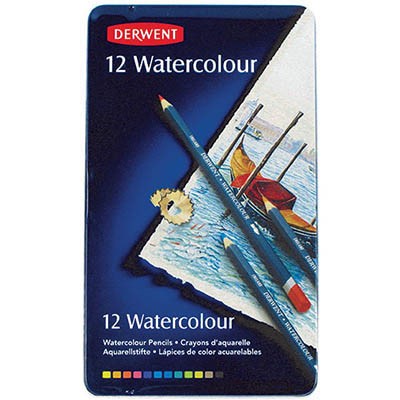 DERWENT WATERCOLOUR PENCILS ASSORTED TIN 12