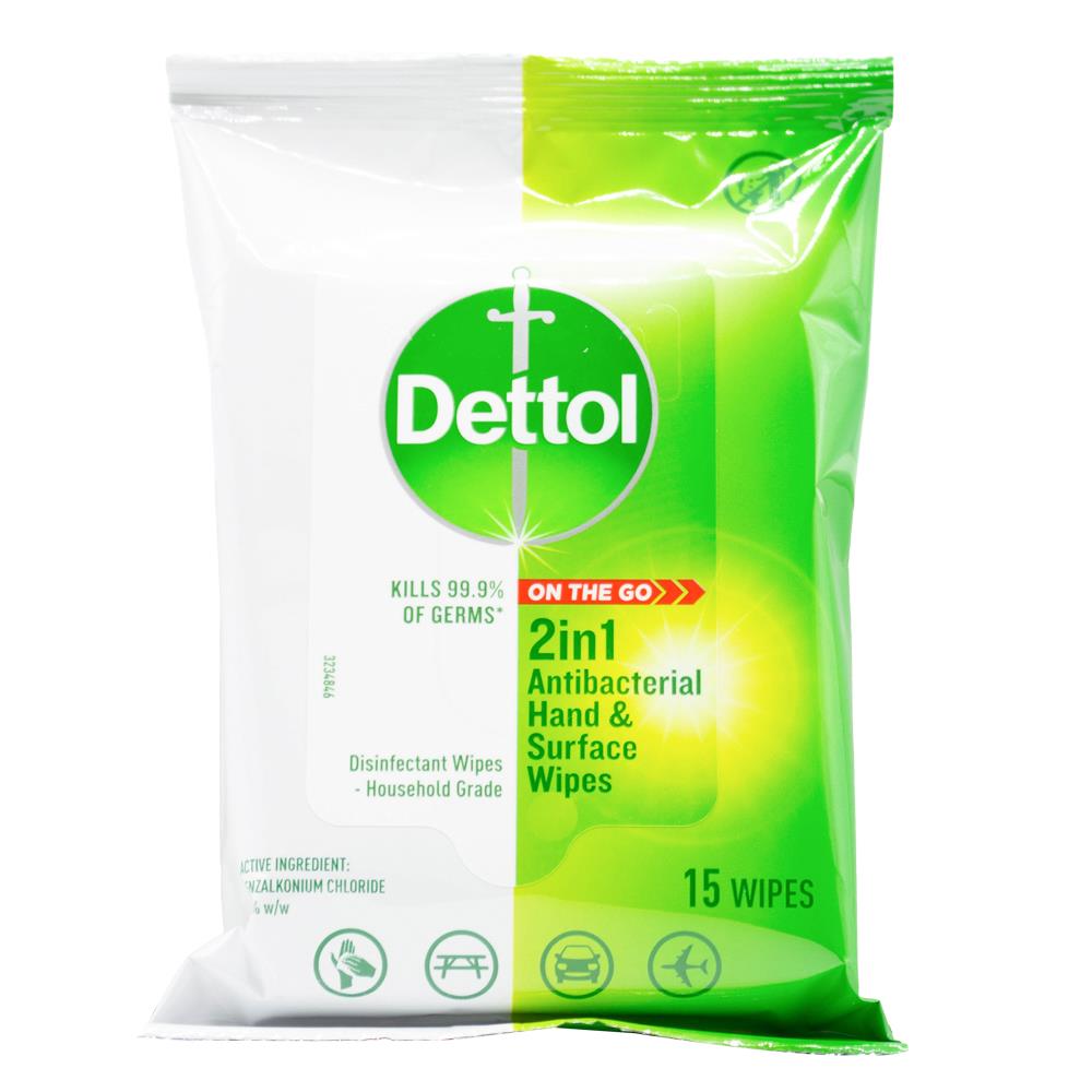 DETTOL ANTIBACTERIAL HAND AND SURFACE WIPES PK15