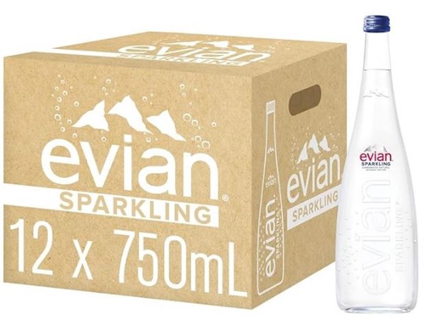 Evian Natural Mineral Water ? Sparkling (750ml Glass Bottles x 12)