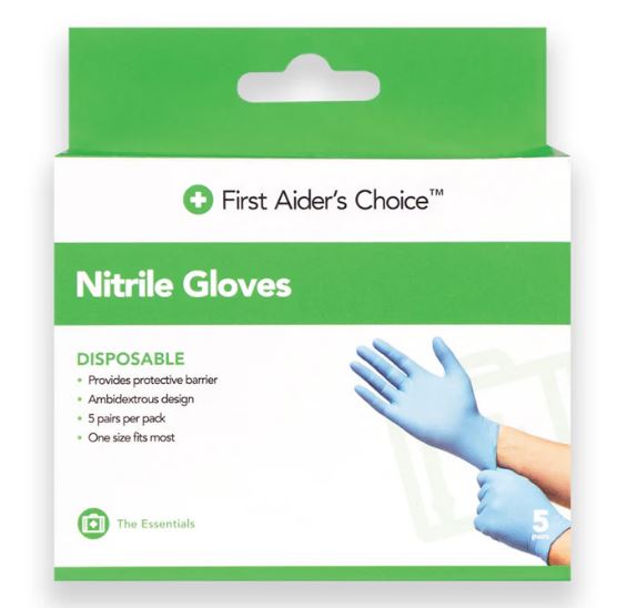 FIRST AIDERS CHOICE DISPOSABLE NITRILE GLOVES - 5 PAIRS