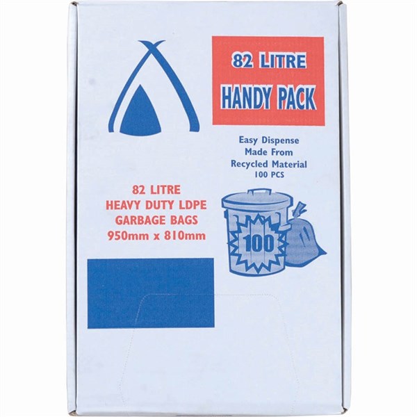 HUHTAMAKI HANDY PACK BIN LINER 82 LITRE 950 X 810MM BLACK PACK 100