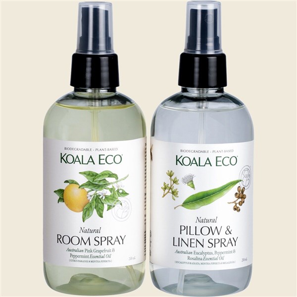 The Koala Eco Gift Box Aromatherapy Duo 2pk features a calming room spray and a soothing pillow-linen spray, crafted from natural, plant-based ingredients. This duo is designed to refresh your living space and promote relaxation, with gentle, eco-friendly scents that uplift the mind and calm the senses. Perfect for gifting or personal indulgence, both sprays are cruelty-free, sustainably packaged, and ideal for creating a peaceful, aromatic environment at home.