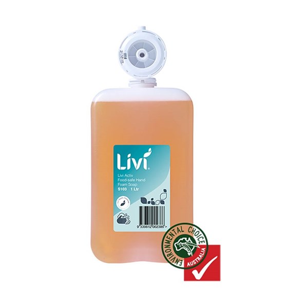 LIVI ACTIV FOOD-SAFE FOAMING HAND SOAP CARTRIDGE 1 LITRE CARTON 6