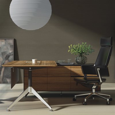 NOVARA EXECUTIVE DESK AND RIGHT HAND RETURN 2150 X 1850 X 750MM ZEBRANO TIMBER VENEER