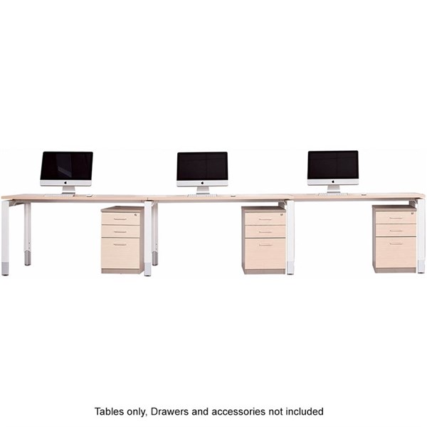 OBLIQUE HEIGHT ADJUSTABLE 3 PERSON STRAIGHT DESK 3600 X 750 X 720MM SNOW MAPLE