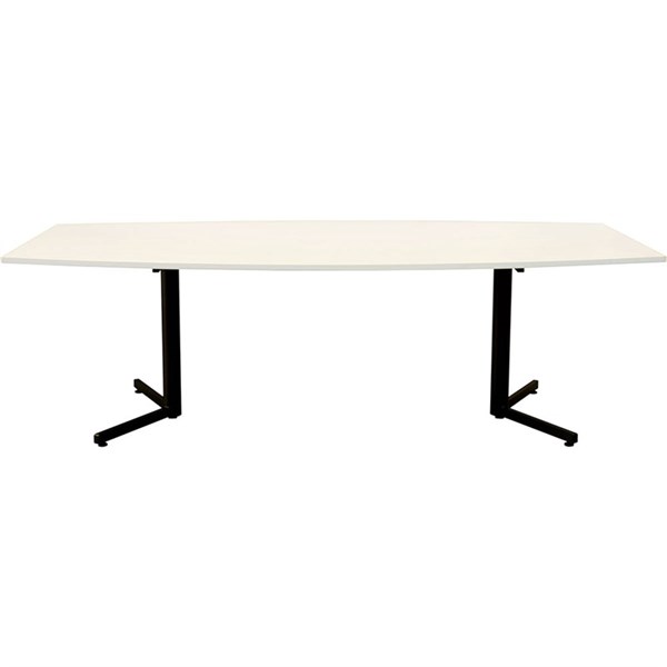 OM BOARDROOM TABLE BOAT SHAPED 2400 X 1200MM WHITE/BLACK