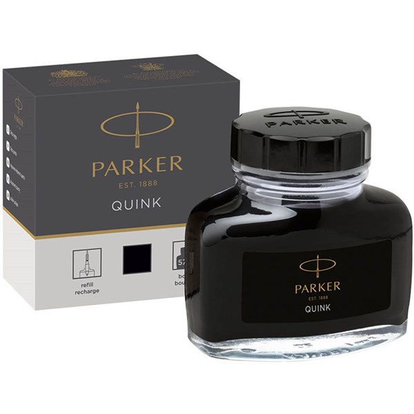 PARKER QUINK FOUNTAIN PEN BOTTLE INK BLACK 57ML