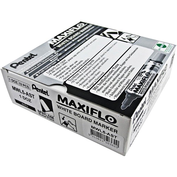 PENTEL MAXIFLO WHITEBOARD MARKER BULLET 2.1MM ASSORTED BOX 12