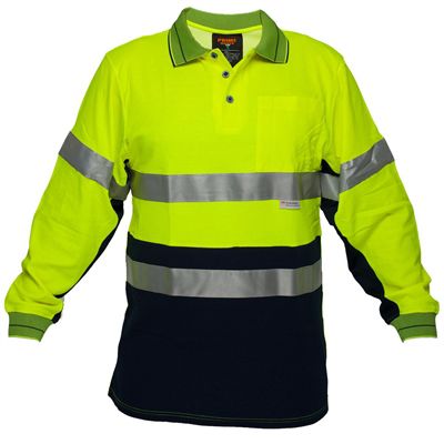PORTWEST MP513 HI-VIS POLO SHIRT MICRO MESH WITH TAPE LONG SLEEVE TAPE 2-TONE YELLOW NAVY LARGE