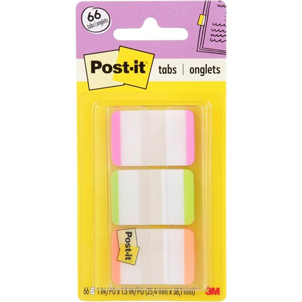 POST-IT 686L-PGO DURABLE INDEX TABS 25MM WIDTH 22 TABS EACH COLOUR WHITE WITH ASSORTED TIPS