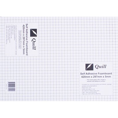QUILL Self Adhesive Foam board has a peel-off covering sheet to reveal a smooth self adhesive surface with a rigid 5mm foam core