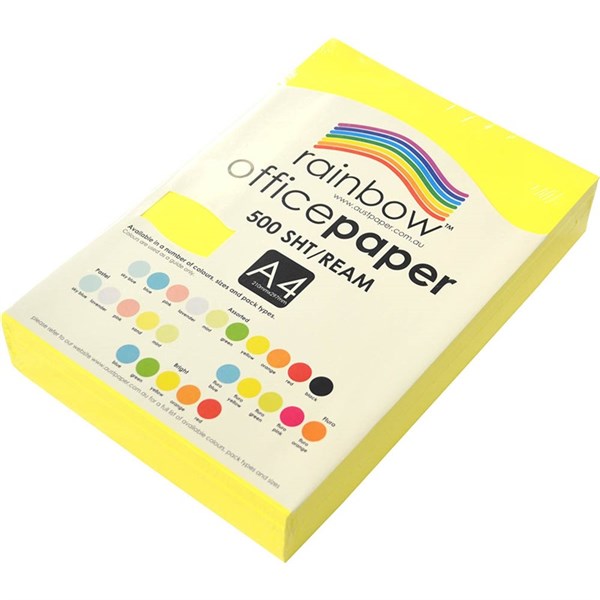 RAINBOW COLOURED A4 COPY PAPER 75GSM 500 SHEETS FLURO YELLOW