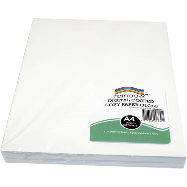 RAINBOW DIGITAL COATED A4 COPY PAPER GLOSS 100GSM WHITE 250 SHEETS
