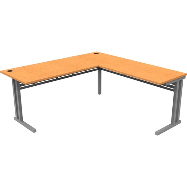 RAPID SPAN C LEG DESK AND RETURN WITH METAL MODESTY PANEL 1800 X 1800 X 730MM BEECH/SILVER