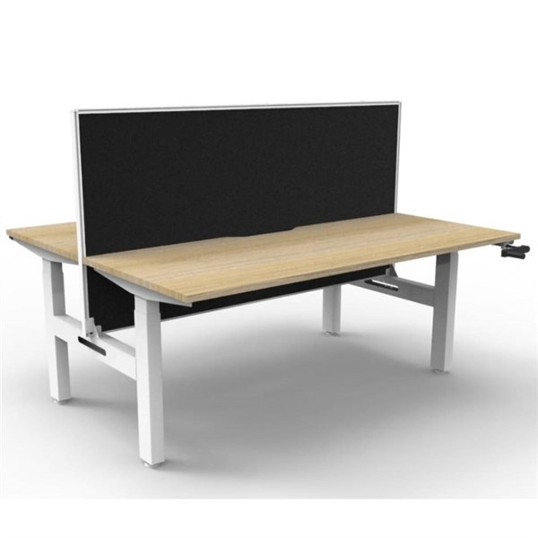 RAPIDLINE BOOST CRANK BACK TO BACK WORKSTATION WITH SCREEN 1200 X 1500 X 705MM NATURAL OAK TOP AND WHITE SATIN FRAME