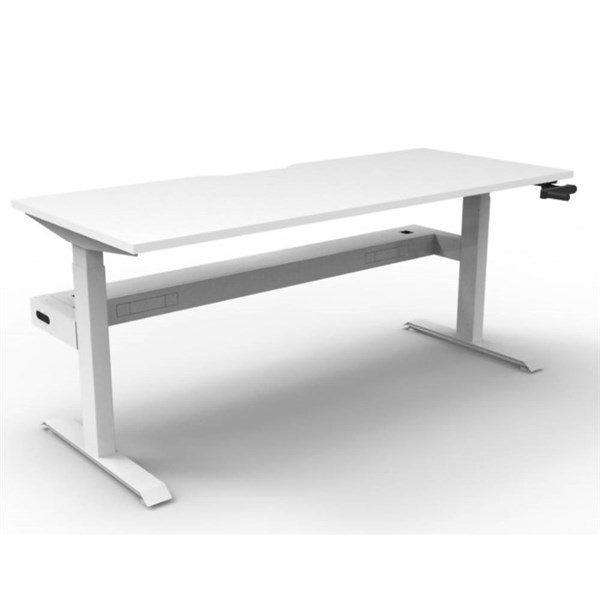 RAPIDLINE BOOST CRANK SINGLE SIDED WORKSTATION WITH CABLE TRAY 1800 X 750 X 705MM NATURAL WHITE TOP AND WHITE SATIN FRAME