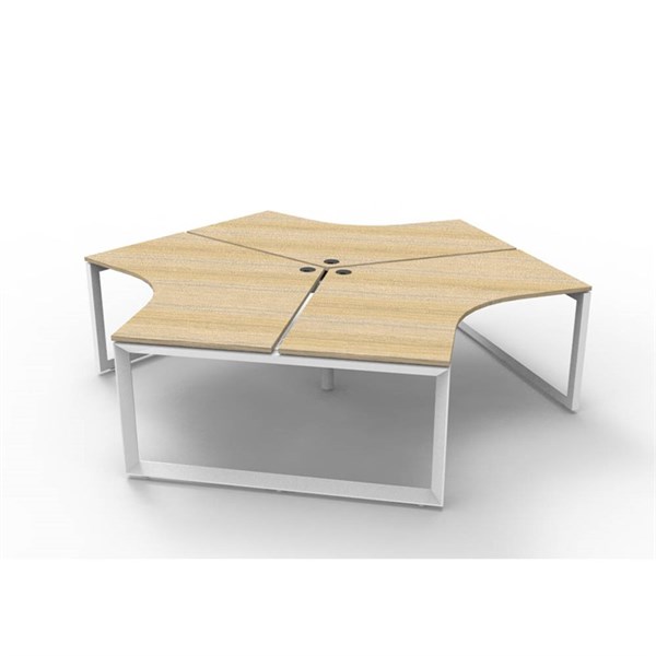 RAPIDLINE DELUXE INFINITY 120 DEGREE WORKSTATION LOOP LEG 3 PERSON 2866W X 730MM NATURAL OAK TOP AND WHITE P/C FRAME