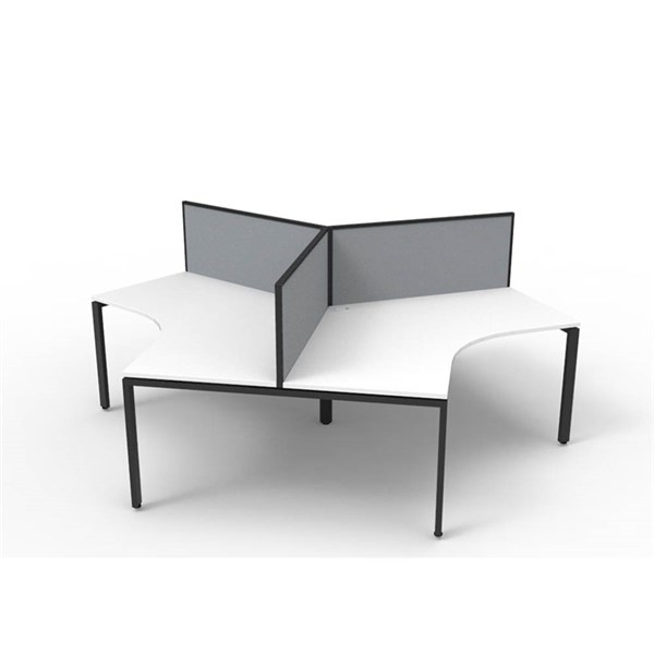 RAPIDLINE DELUXE INFINITY 120 DEGREE WORKSTATION PROFILE LEG 3 PERSON WITH SCREEN 2866W X 730MM NATURAL WHITE TOP AND BLACK P/C FRAME