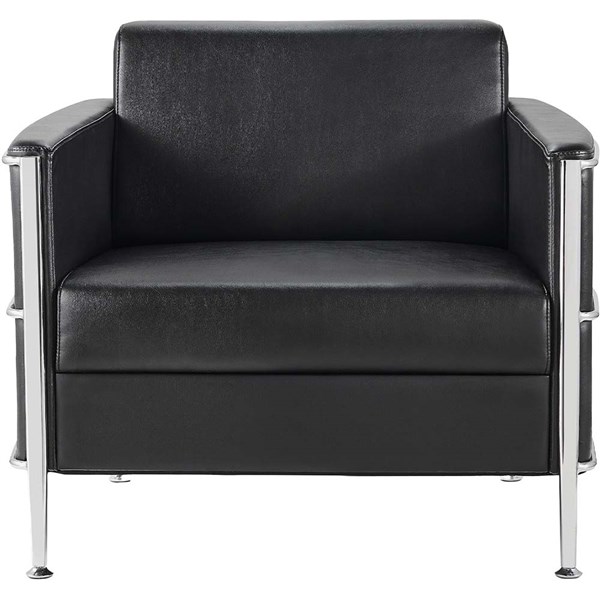 The Eclipse Lounge Range offers a contemporary seating solution with a chrome wrap-around frame and black PU leather upholstery