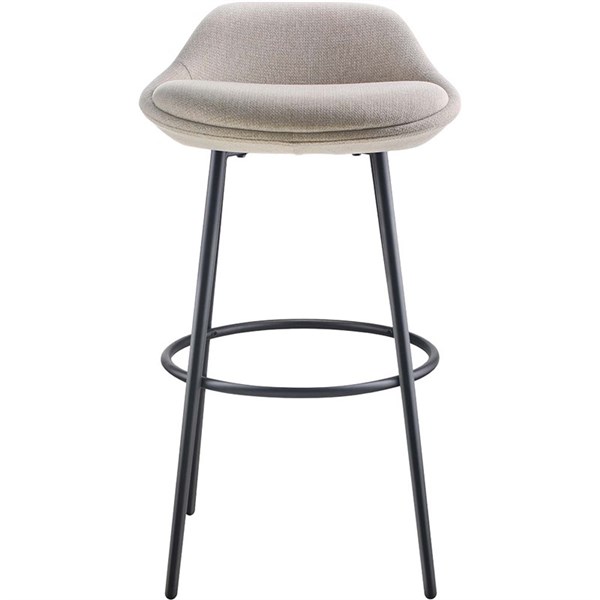 The Eros Bar Stool features a comfortable fabric seat and a robust, powder-coated base with a footrest for added support
